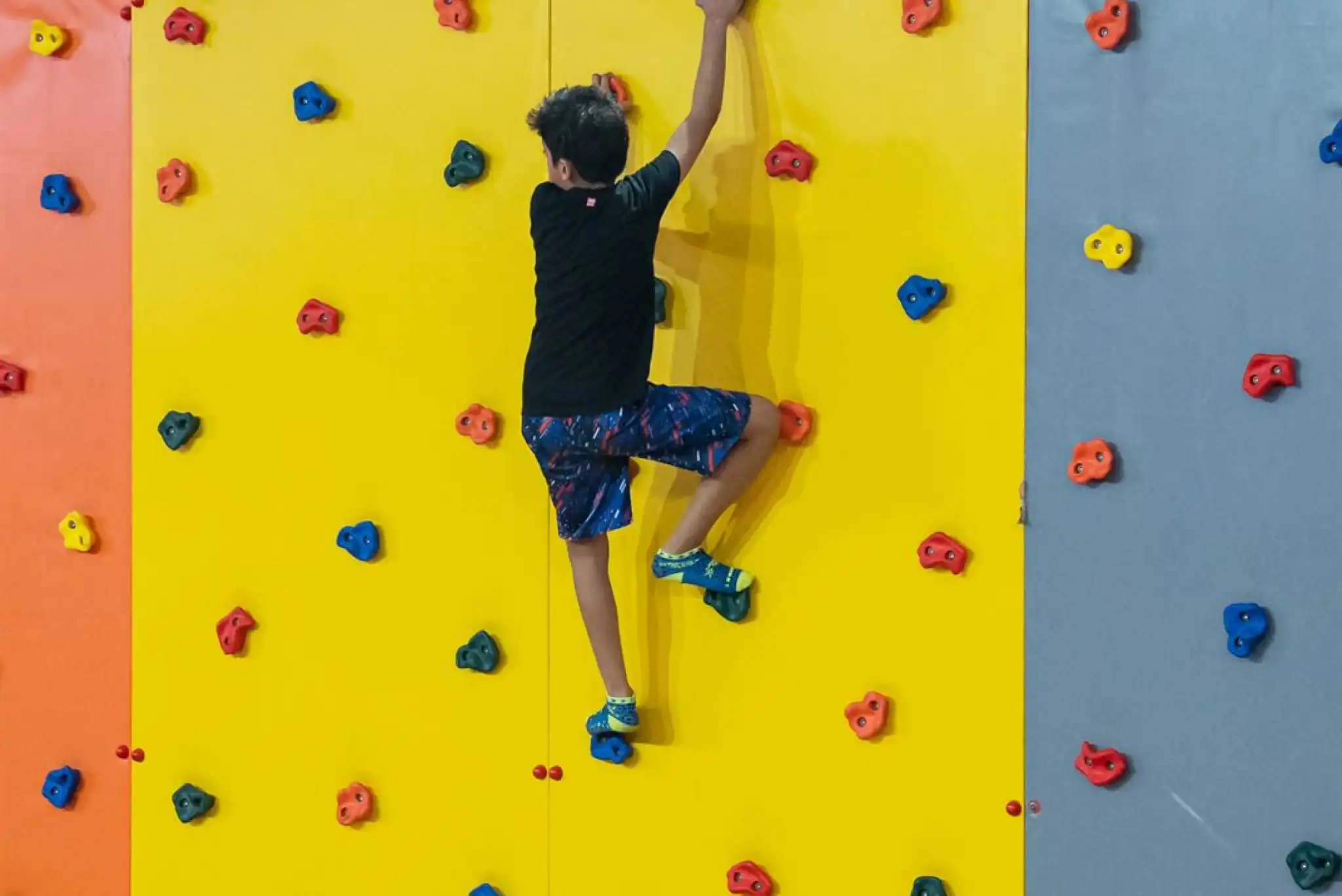Experience the ultimate thrill at Butterfly Trampoline Park’s wall-climbing activity!